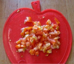 Помидоры тоже порезать кубиками