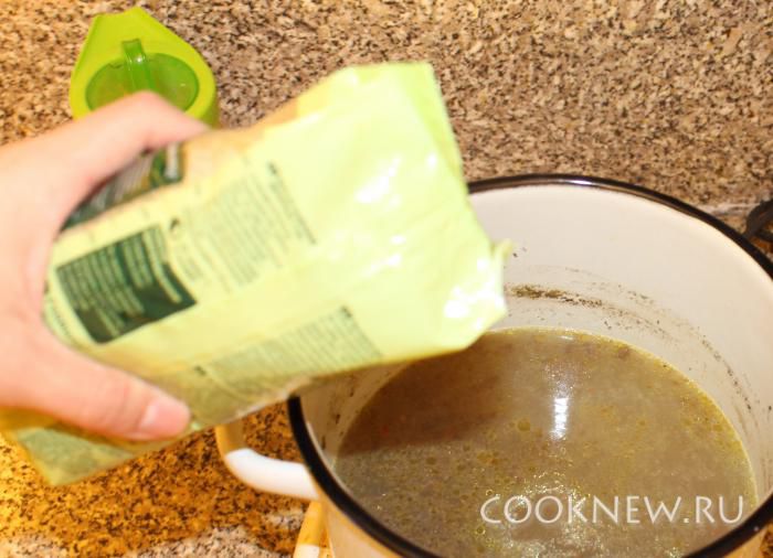 В оставшийся бульон после курицы засыпьте 150 г. риса, варить минут 5-10.