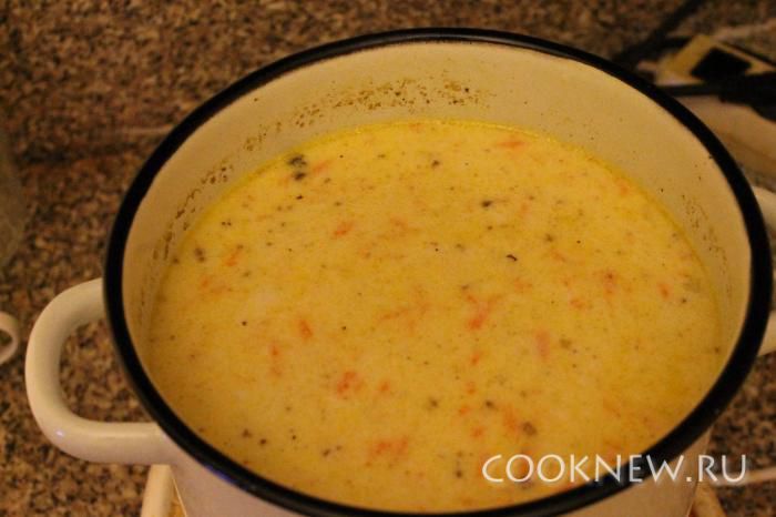 Добавить плавленный или сливочный сыр, хорошо перемешать для одинаковой консистенции и убрать с плиты. При подаче можно добавить зелень.