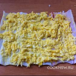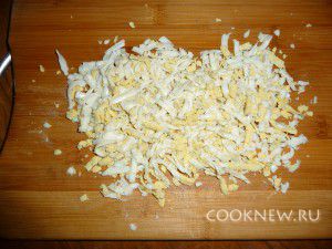 Яицо отварить вкрутую и тоже натереть на мелкой терке.