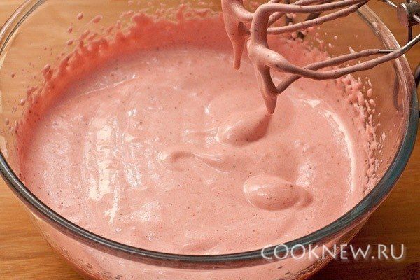 Теперь дайте смеси остыть до комнатной температуры и взбивайте миксером 5-7 минут на высокой скорости, пока смесь значительно не увеличится в объеме, посветлеет и станет густой.