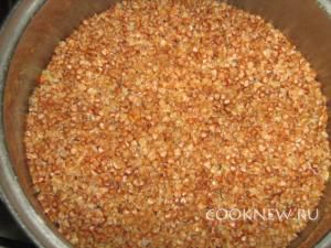Отделите желтки от белков. Желтки взбейте до белесой пены, добавьте в гречку с творогом.