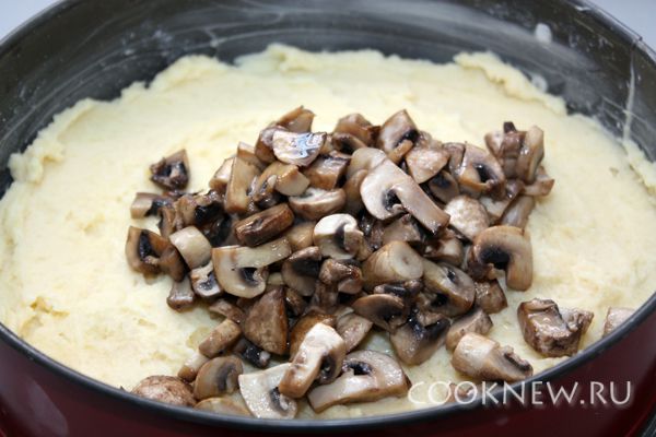 Сверху выложить обжаренные шампиньоны