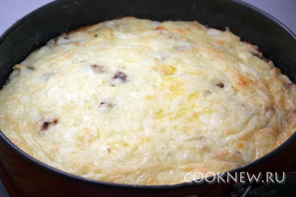 Картофельную запеканку можно таким же образом готовить не с грибами, а с мясом, сыром или другими начинками.