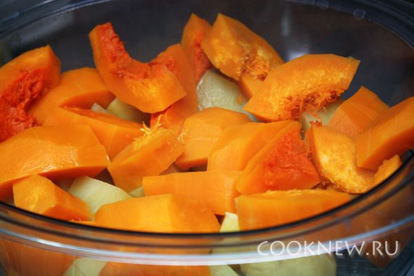 Картошку и тыкву очистить, нарезать довольно крупными кусками и сварить