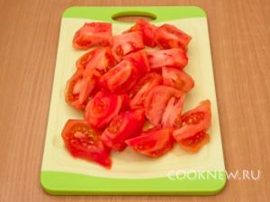 Помидоры очистить от кожицы, разрезать на 3-4 части