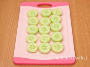 Огурцы очистить от кожуры, нарезать не сильно мелко