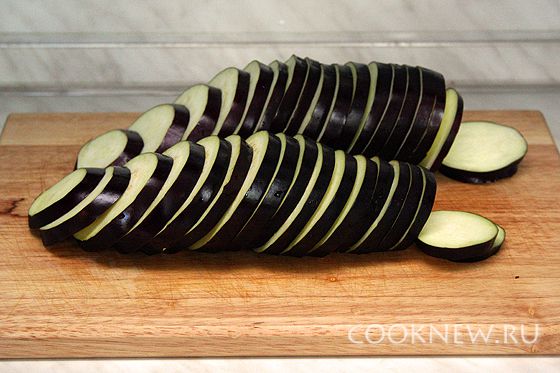 Вымыть и нарезать баклажан кольцами по 5 мм