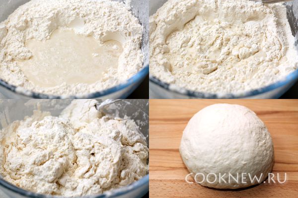 Для теста просейте муку в широкую миску, сделайте углубление в центре, добавьте соль и влейте воду (около 300 мл, в зависимости от муки). Замесите довольно крутое гладкое тесто. Месите его несколько минут, затем сделайте шар, накройте полотенцем и дайте отдохнуть 10-15 минут