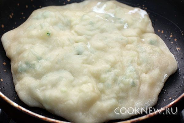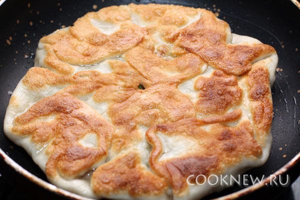 Подготовленные лепешки кладите на разогретую сковороду с маслом (огонь должен быть маленьким) швом вниз. Готовьте под крышкой 5-7 минут до золотистого цвета