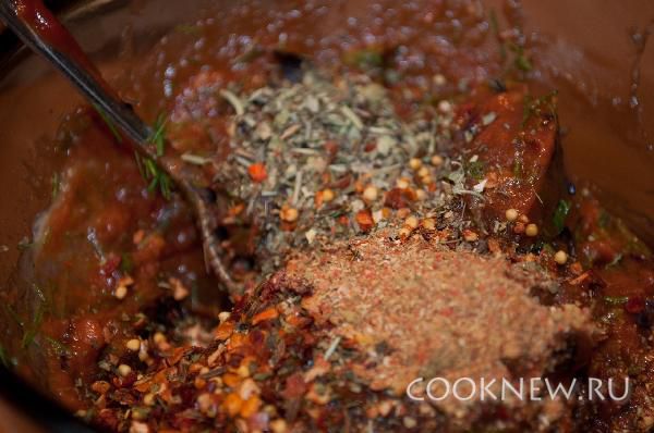 Для основы пиццы- растопим немного сливочного масла, добавим маленькую баночку (или половинку) томатной пасты, приправы, перец, соль (не переборщите), а так же положим часть зелени