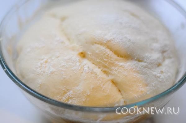 Добавляем постепенно оставшуюся муку, и хорошенько вымешиваем до того момента, пока тесто не перестанет липнуть к рукам. Не переборщите с мукой, возможно потребуется и меньше указанной в рецепте порции. Ставим в теплое место - подходить