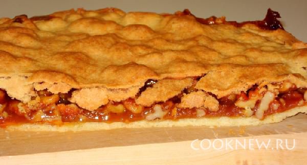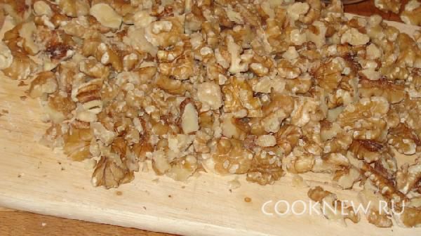 Берем тесто из холодильника,даем отдохуть 30 мин.Орехи режем. Разогреваем духовку до 180C