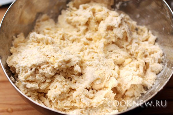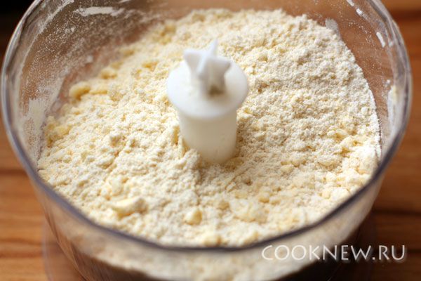 Порубите муку вместе с маслом. Это можно сделать ножом, специальным устройством или блендером. Масса должна напоминать крошки