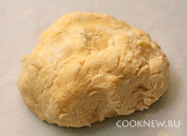 Сделайте из теста шар. Не месите его сильно, оно должно остаться неоднородным, чтобы впоследствии образовалась легкая слоистость от растаявшего масла