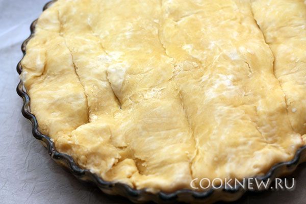 Накройте пирог тестом, подворачивая края внутрь формы
