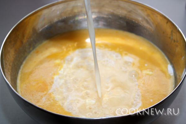 В миске смешаем яйца, сахар, цедру, добавим туда цитрусовый сок и перемешиваем до однородного состояния