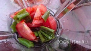С помидора снимаем кожицу и нарезаем на куски, чтобы ваш блендер смог их перемолоть