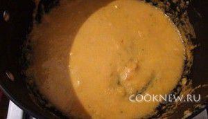 Получившуюся смесь выливаем в сковороду и выпариваем жидкость до загустения, в конце добавляем уксус и соль