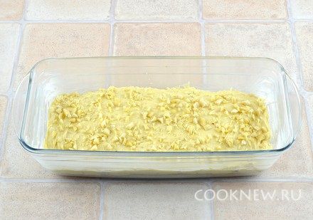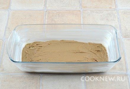 Форму хорошо смазать маслом (я использовала форму 24х10 см). Выложить тесто с какао, хорошо разровнять поверхность.