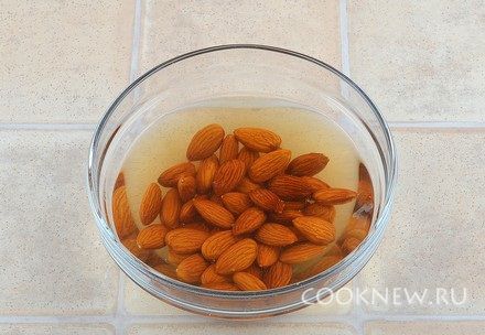 Миндаль залить кипятком на 5 минут, затем очистить от шкурки.