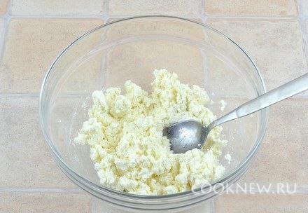 Творог растереть с 1 ст.л. сахара и щепоткой соли