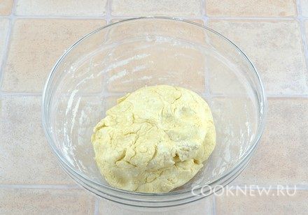 Добавить разрыхлитель, муку, вымешать ложкой, затем слепить руками тесто в шар. Поставить в холодильник минимум на 2 часа.