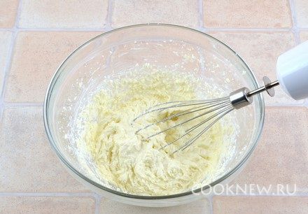 Мягкое сливочное масло, сахар (120 гр) и ванильный сахар немного взбить