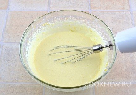 Добавить яйца по одному, каждый раз взбивая миксером. Добавить лимонную цедру, молоко, взбить