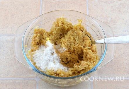 Добавить сахар (2 ст ложки), корицу, перемешать (если яблоки сладкие, сахар можно не класть)