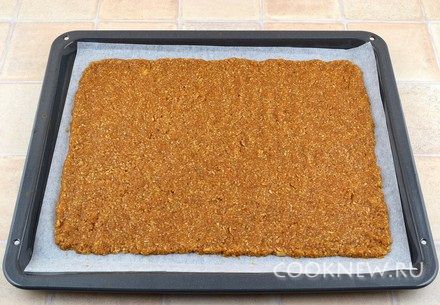 На противень постелить пекарскую бумагу. Выложить яблоки почти на всю ширину противня, отступив по 2-3 сантиметра от края, разровнять