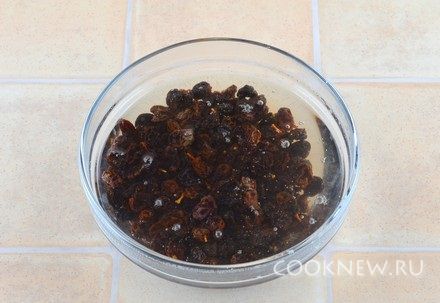 Затем воду слить и изюм слегка отжать. Полить его коньяком, оставить настаиваться на 10 минут