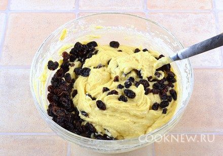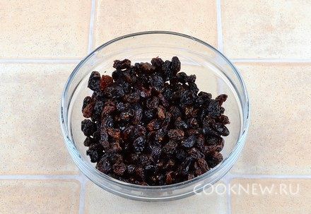 Изюм залить кипятком на 4-5 минут, чтобы он хорошо распарился.
