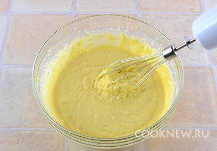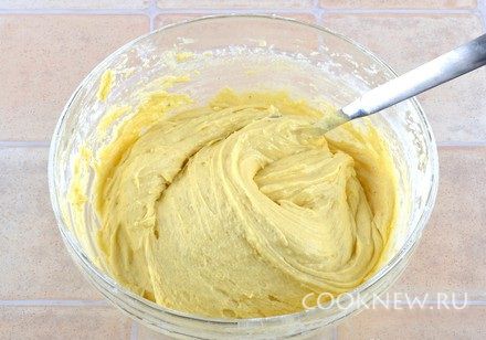Добавить разрыхлитель и муку, перемешать. Тесто получается мягкое, пластичное.