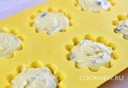 Формочки смазать маслом. Выложить тесто ложкой на 3/4 по высоте формочек. Поставить в разогретую до 180 градусов духовку. Выпекать 25 минут.