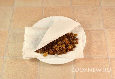 Изюм промыть, просушить в салфетке
