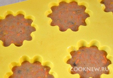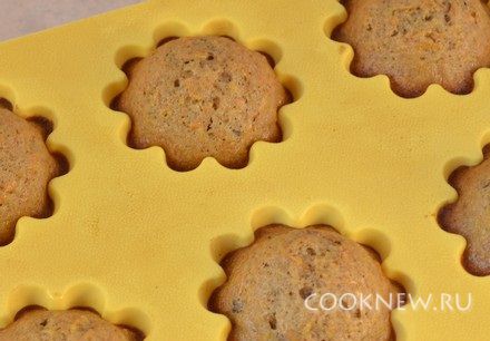 В смазанные маслом формочки (у меня силиконовая форма) выложить ложкой тесто на 3/4 по высоте. Поставить в разогретую до 180 градусов духовку. Выпекать 25 минут. Проверить зубочисткой на готовность.