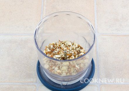 Орехи немного порубить в измельчителе или крупно порезать ножом.