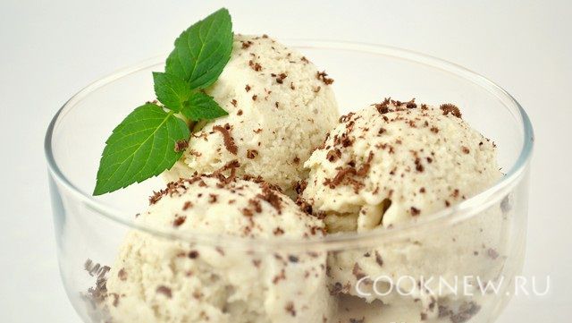 Ложкой для мороженого или обычной ложкой, выложить банановое мороженое в креманку, можно посыпать тертым шоколадом или орехами.
