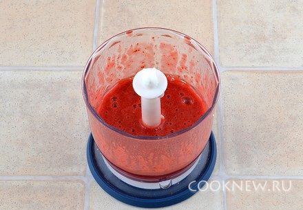 Если клубника была заморожена, предварительно ее разморозить. Клубнику и сахар измельчить до растворения сахара. Если клубника не сладкая, добавьте больше сахара.