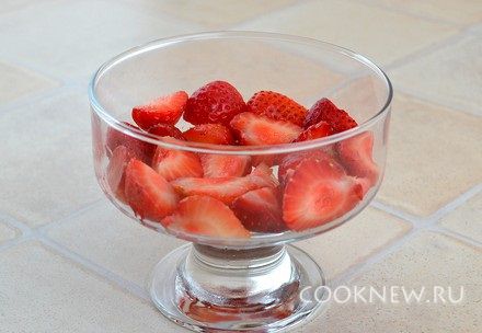 Клубнику порезать на четвертинки (если крупная – то порезать мельче)
