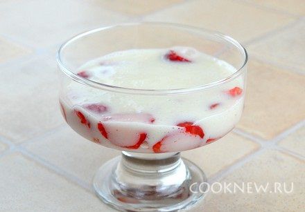 В креманку или чашку выложить клубнику в один слой.