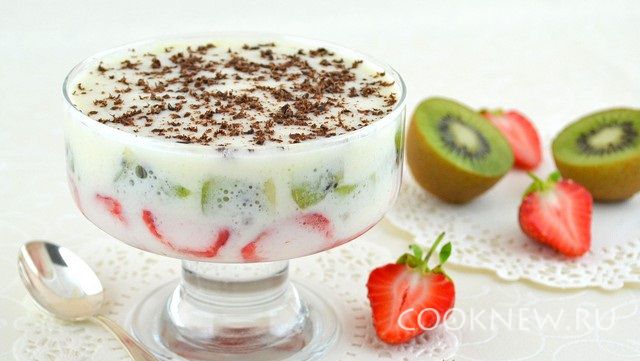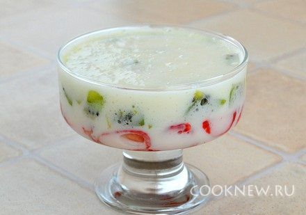 Это простой и неимоверно вкусный десерт - из очень приятного слегка густоватого крема и сочных фруктов. Если у Вас зефир сладкий берите 2 штучки,если не очень-3 и больше.