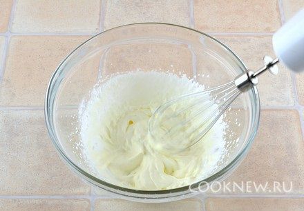 Сливки взбить до плотности, в конце взбивания добавить сахар и еще немного взбить до растворения сахара.