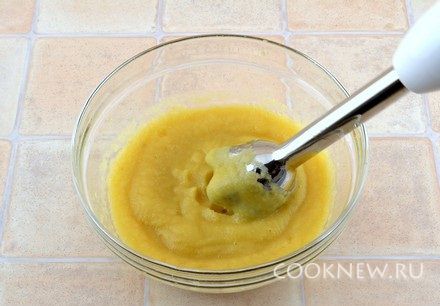 Яблоки тщательно пюрировать погружным блендером (если нет блендера - протереть сквозь сито)