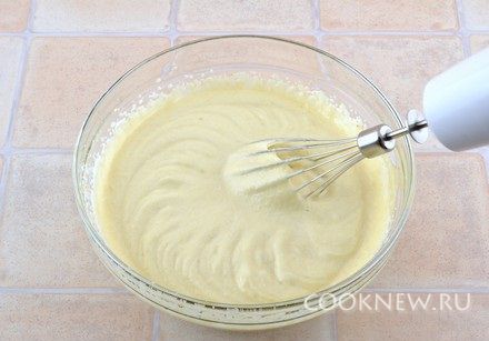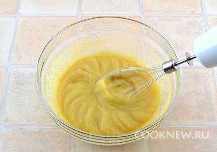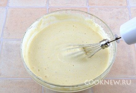 Влить желатин, продолжая взбивать миксером, взбить в течение минуты