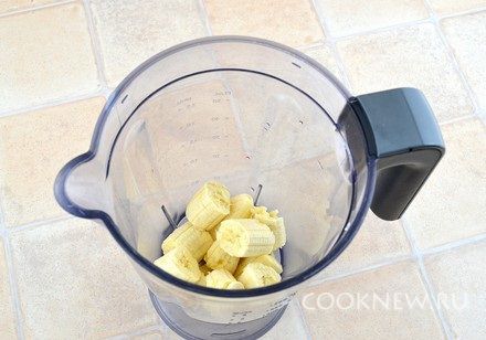 Бананы почистить, поломать крупными кусочками, положить в блендер