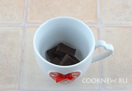 Шоколад поломать на кусочки, положить в чашку