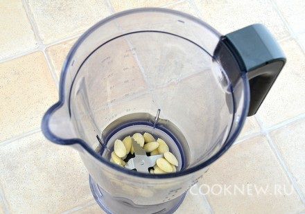 Положить очищенный миндаль в стационарный блендер, добавить 200 мл воды.