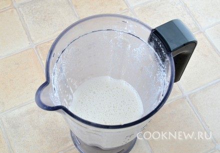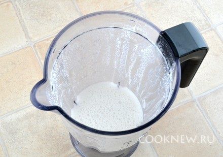 Тщательно взбить в течение примерно 5 минут с перерывами. Миндальное молоко уже получается насыщенного белого цвета, как настоящее молоко.